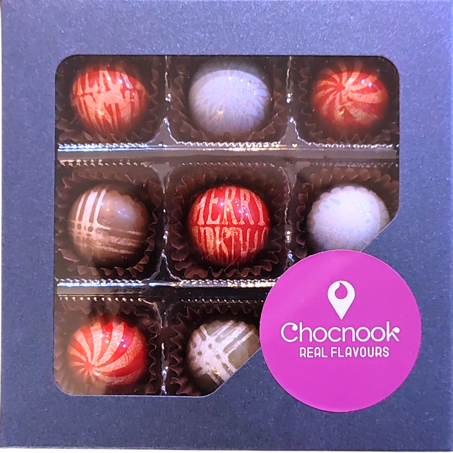 Curated nine-bonbon box, featuring four seasonal flavours for Christmas celebration and gift. Under a milk shell, you will find gingerbread, crunchy mint, orange & dark ganache, and caramelized walnuts set inside a maple syrup ganache. A cozy and warm present to share this holiday season.